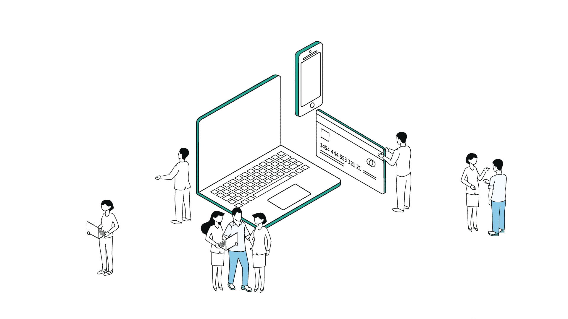 Darstellung einer animierten Infografik, die den Workflow mit den Serviceleistungen für Kunden/-innen aufzeigt. Als Überblick für die bereichsübergreifenden Leistungen dient die Gesamtansicht, die einzelnen Module zeigen im Close-up den Arbeitsprozess.